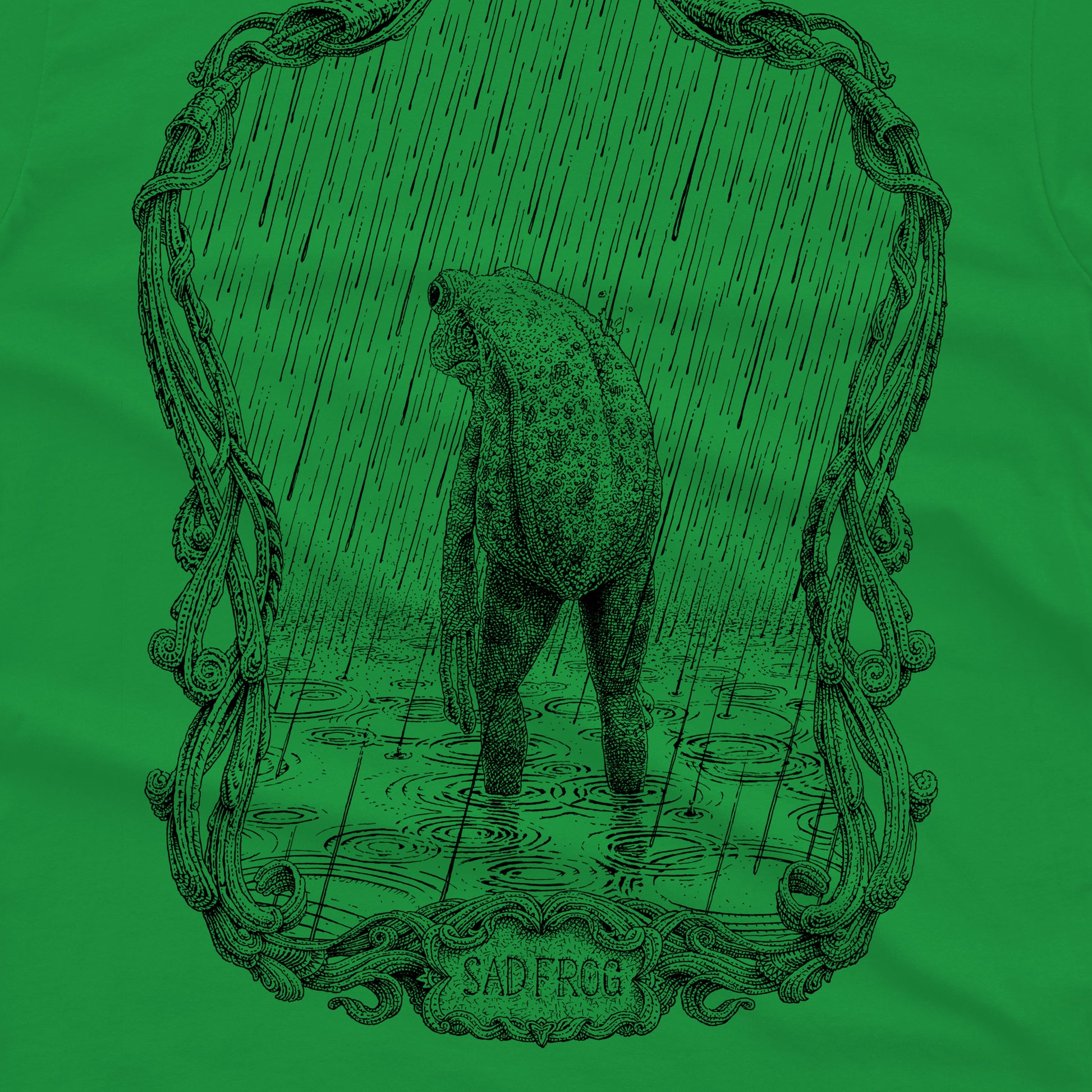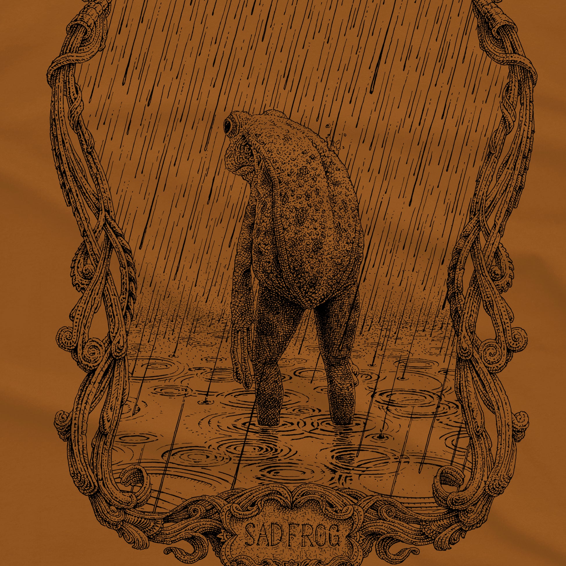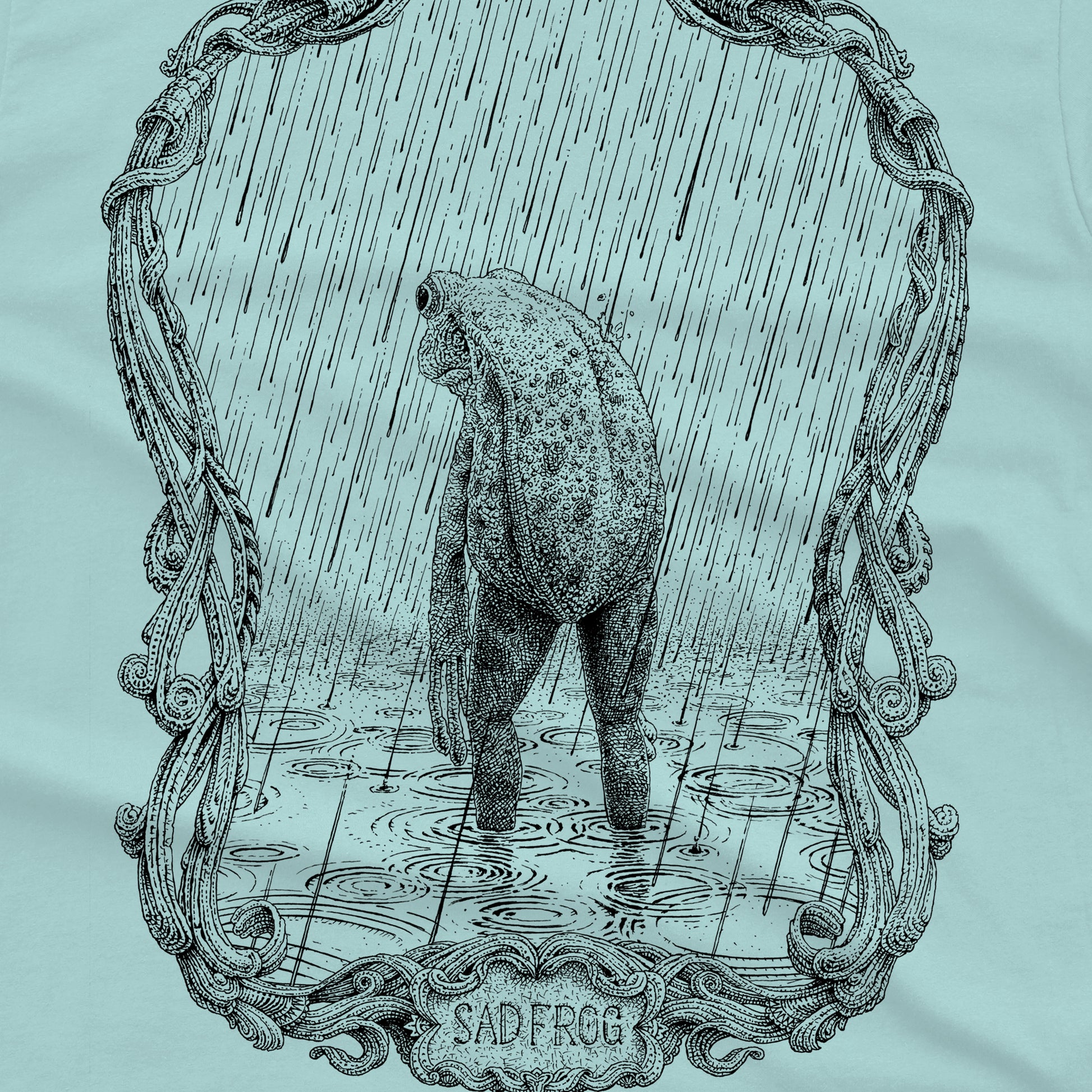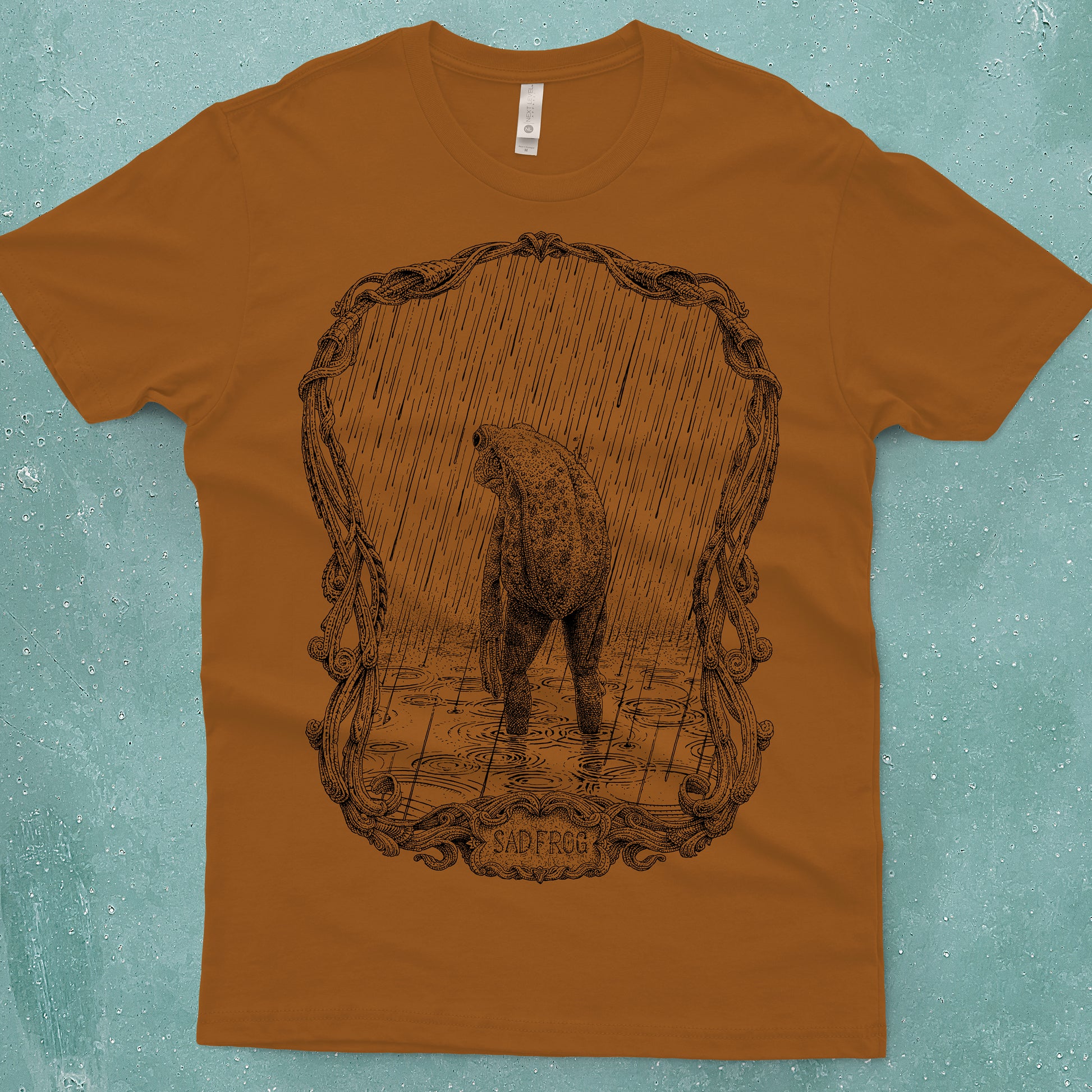 The Sad Frog is from a new original drawing by Michael Phipps. Originally drawn in pen and ink on paper and now screen printed onto a super-soft, Next Level shirt, style 3600. These t-shirts are lightweight, comfortable, and ultra soft. See the size chart in the photos to choose the right size.